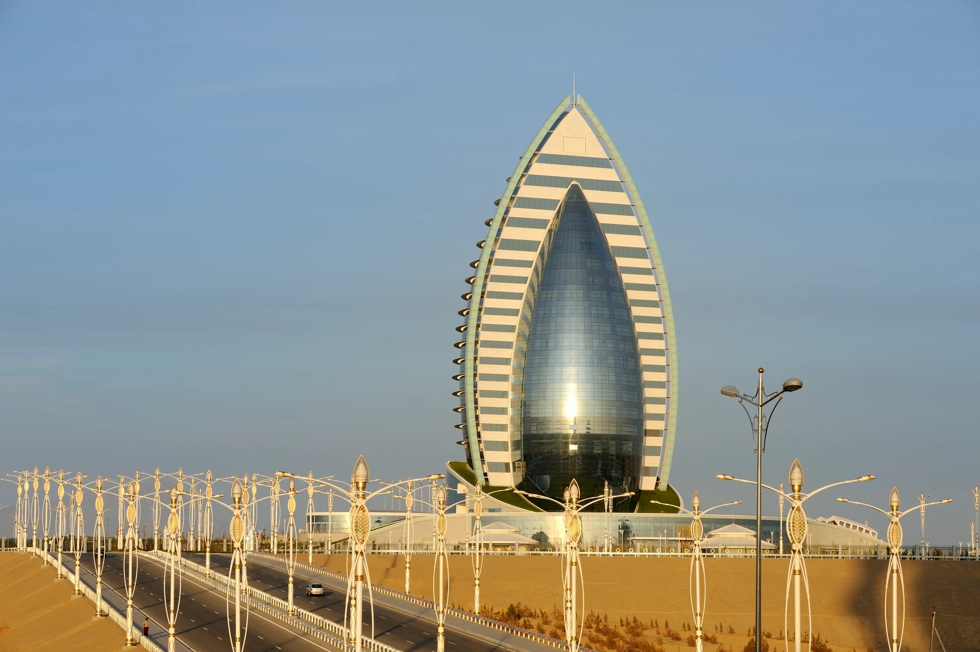 Perched on a hill overlooking the capital of Turkmenistan, the Yyldyz Hotel is a five-star luxury property designed to become a new landmark on the skyline of Ashgabat. Delivered by Bouygues Bâtiment International under a design-and-build contract, the project was completed in just 24 months.
