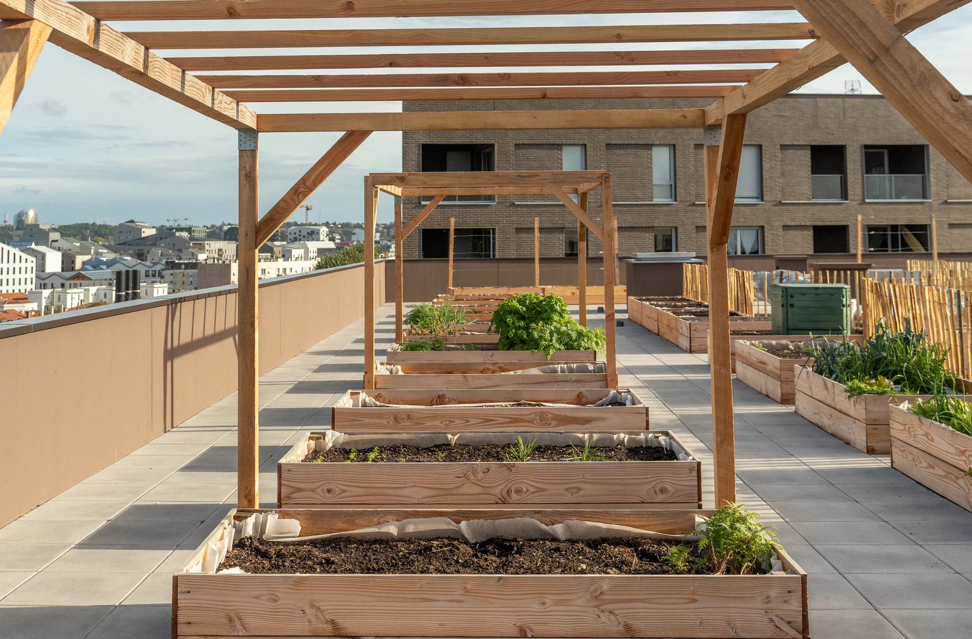 The site’s transformation is driven by a bold vision: to bring nature back to the heart of the urban project. In addition to the 2,800-square-meter central landscaped park, community gardens have been created on the rooftops of the student residence to encourage collective activities and urban agriculture.