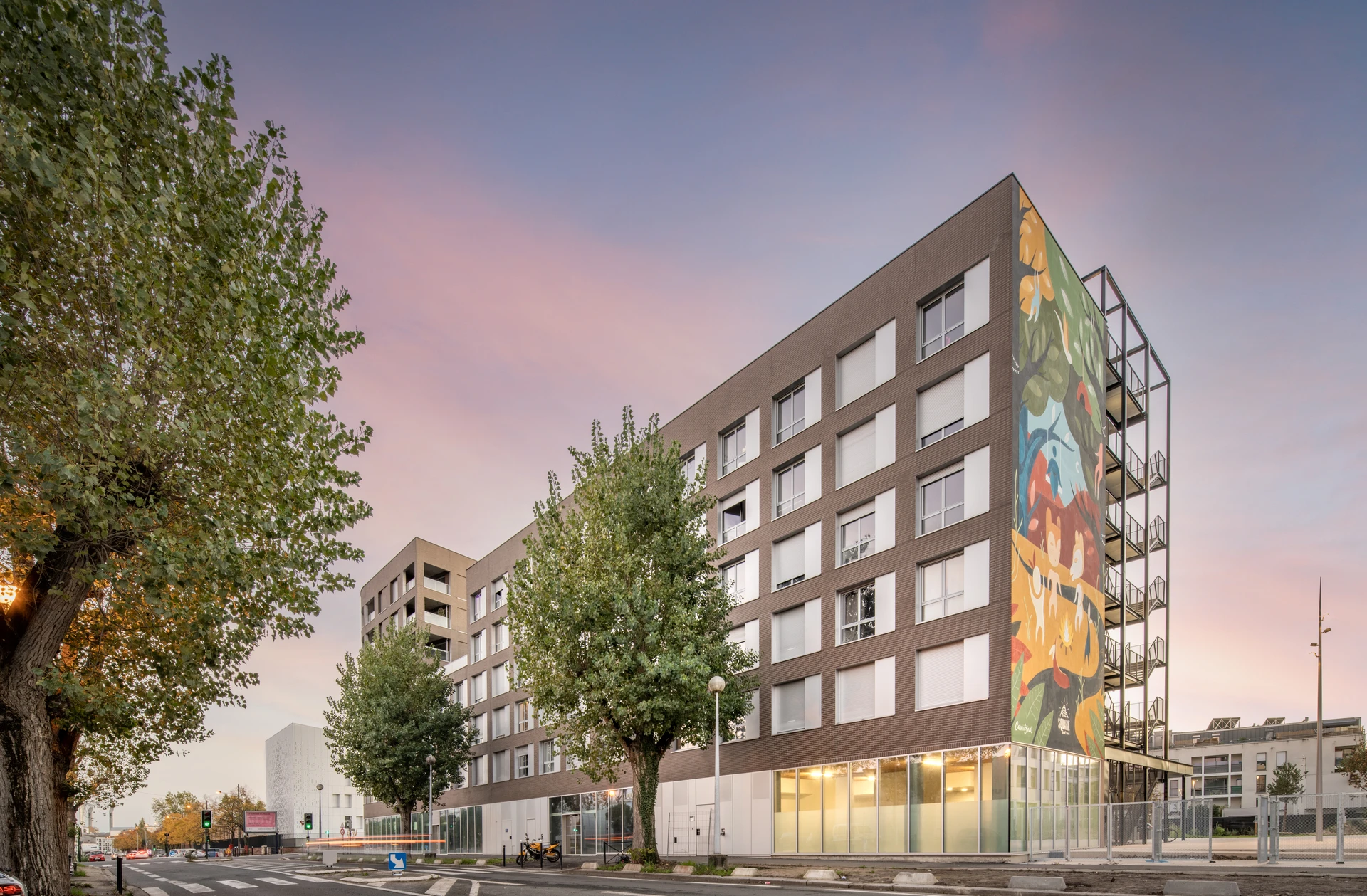 The development combines market-rate and affordable housing, student housing, retail, and local services to meet the needs of a rapidly evolving area. The complex includes 125 family homes, 130 student studios, and over 1,200 m² of commercial space housing local shops and community amenities.