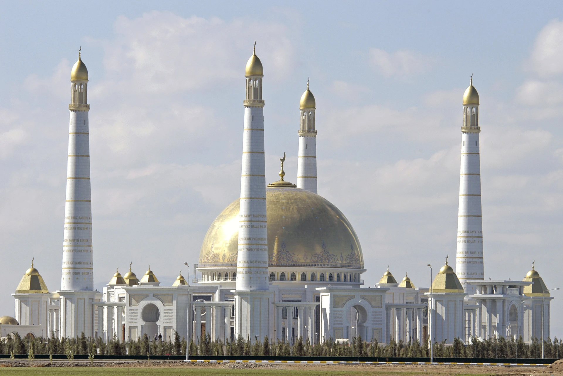 Architecturally, the mosque combines Ottoman influences with traditional Turkmen geometric patterns. Four minarets surround a monumental golden dome, forming a landmark visible from afar and anchoring the site within Turkmenistan’s cultural and spiritual heritage.