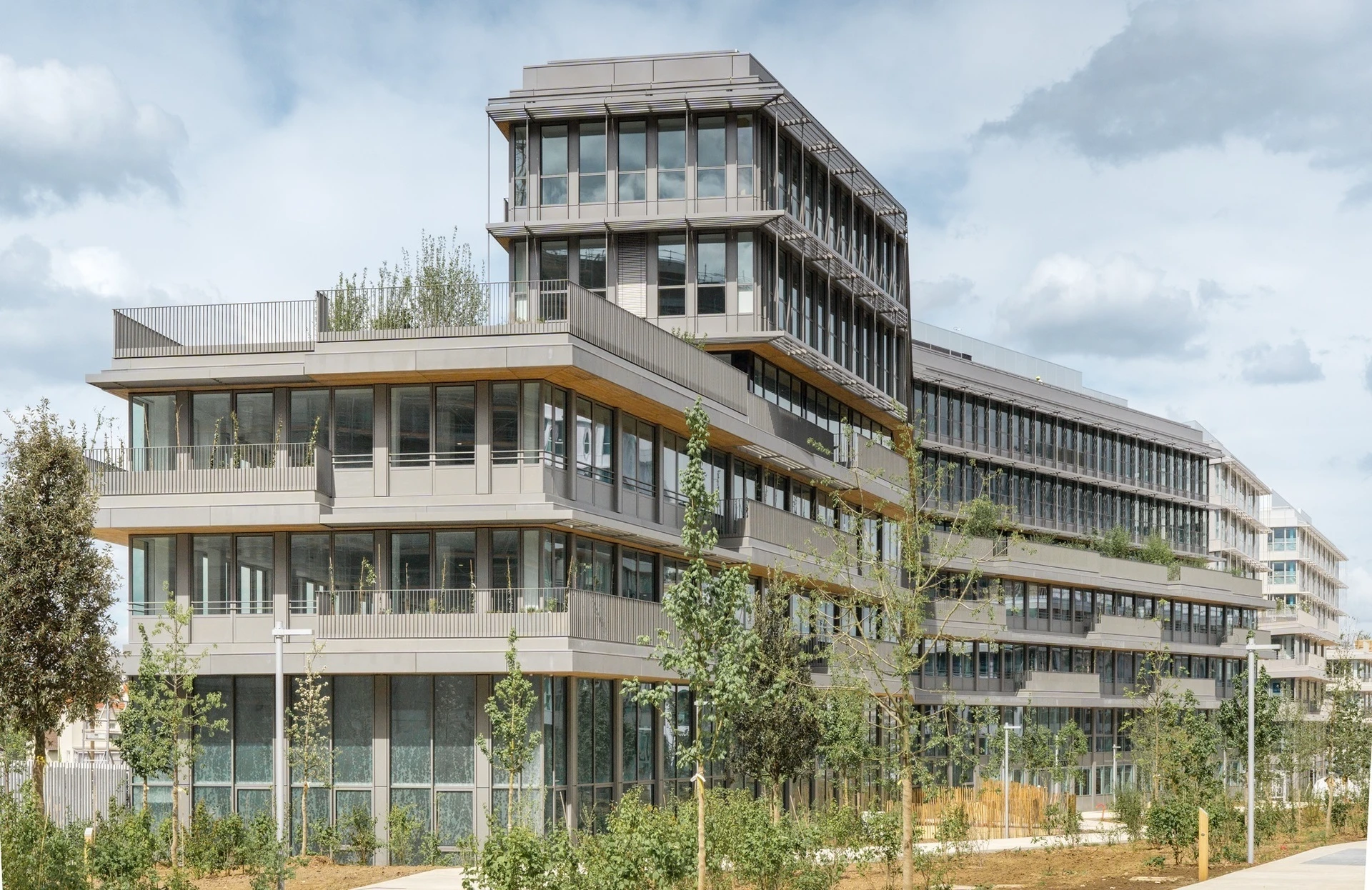 Designed as a true eco-campus, it is organized around four office buildings, a central “Heart” promoting exchanges, and an energy hub dedicated to the site's environmental performance.